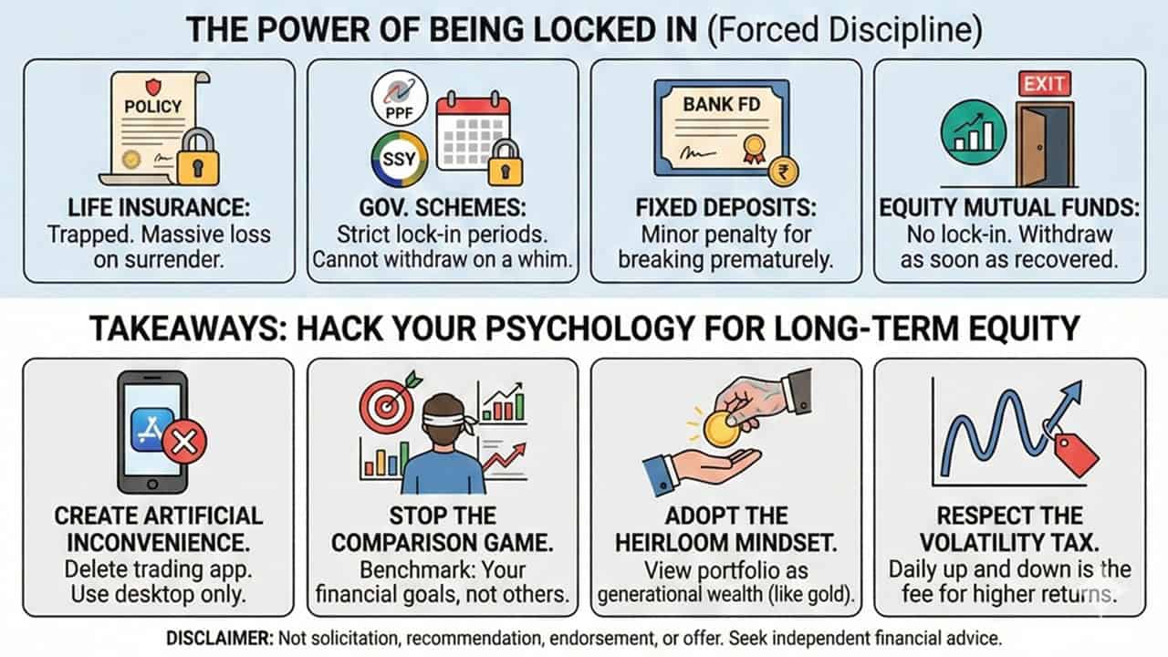 4. Respect the Volatility Tax. Understand that the daily up and down is the fee you pay for higher returns. If you want the stability of an FD, you will get the returns of an FD. If you want the returns of a business (equity), you must accept the messiness of business.