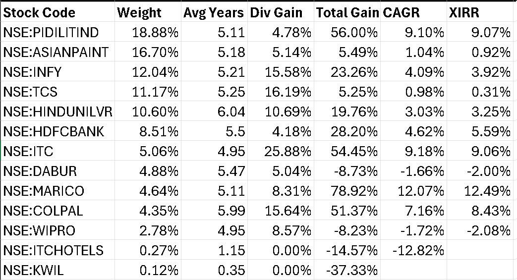 Stock Portfolio XIRR (incl all corporate actions like dividends and splits) 3.85%