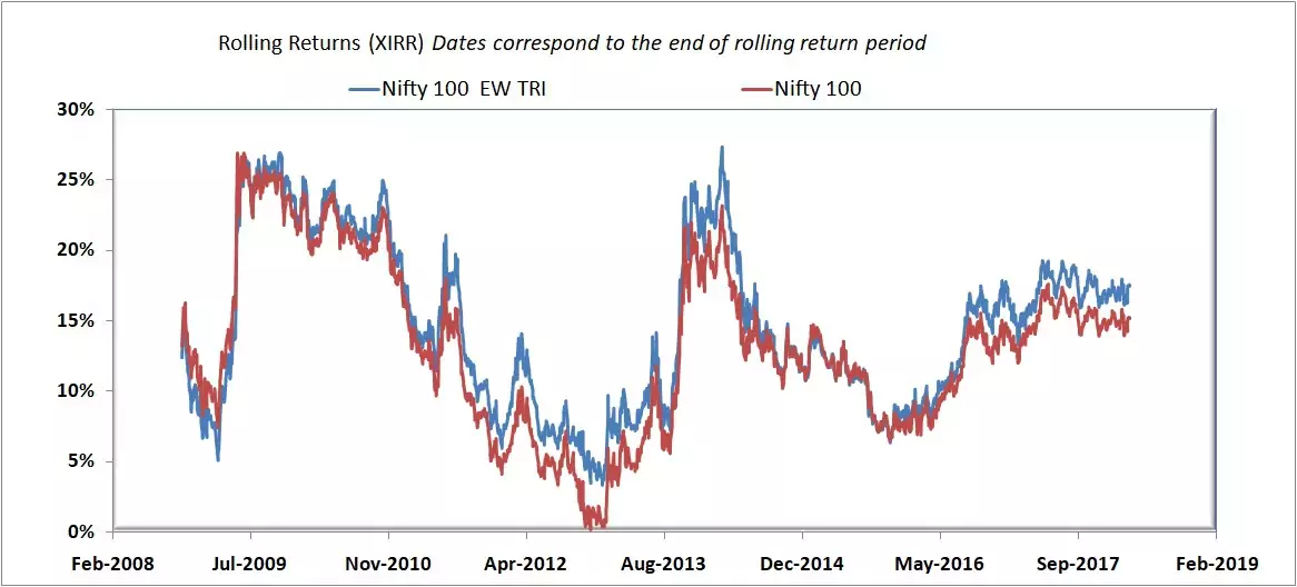 Nifty 50 Equal Weight Index rolling return over 10 years