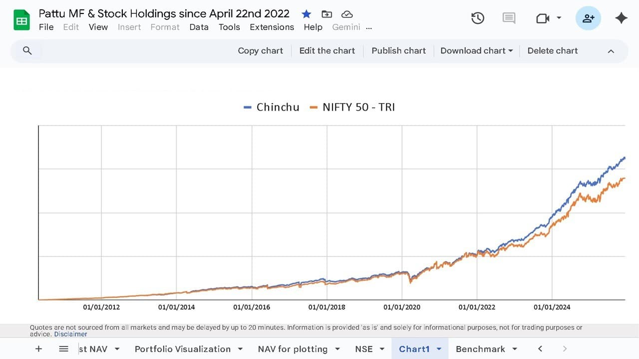 Please do not read too much into the outperformance compared to the Nifty 50 TRI. Sometimes it has, and sometimes it has not. It depends on when you look. See: Why are you recommending index funds when your portfolio has beaten the market?